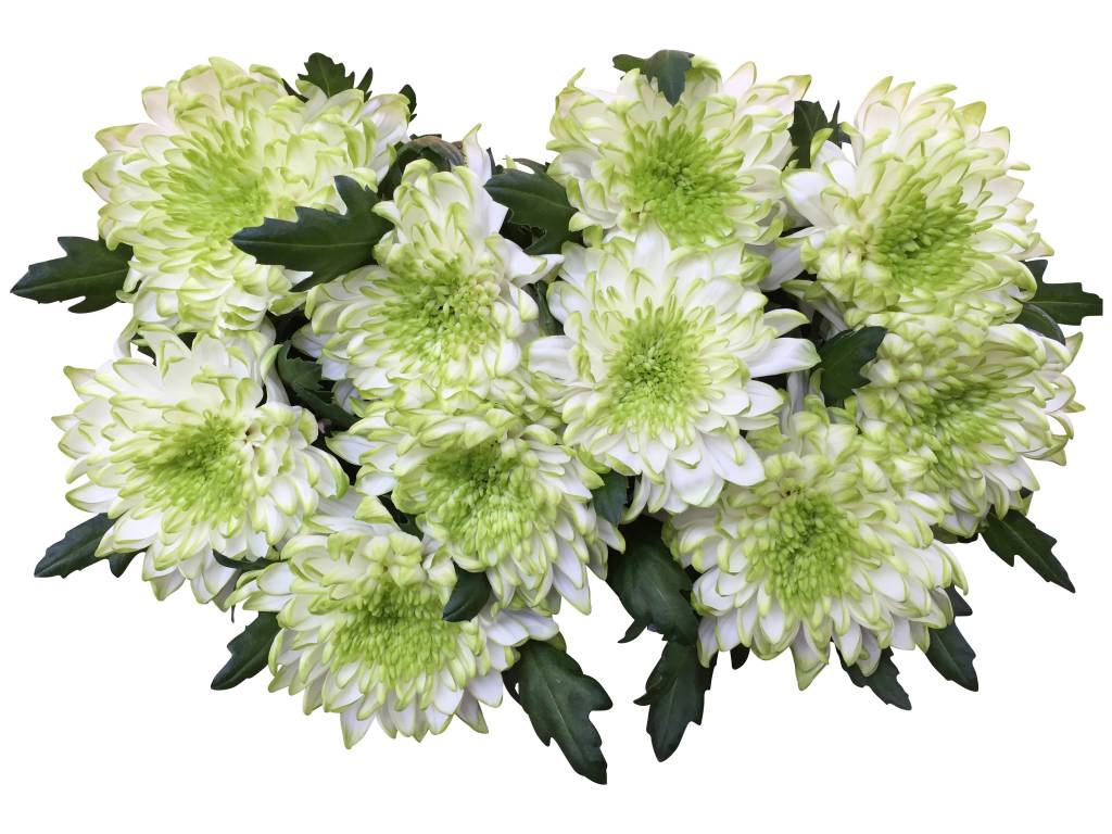 10 Deko Chrysanthemen Zembla Lime (Weiß-Grün)