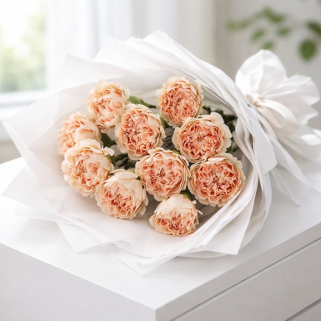 - Elegante Sträuße: Kombinieren Sie die Edelnelken Apple Tea mit Eukalyptus, Schleierkraut oder cremefarbenen Rosen für ein harmonisches Arrangement.