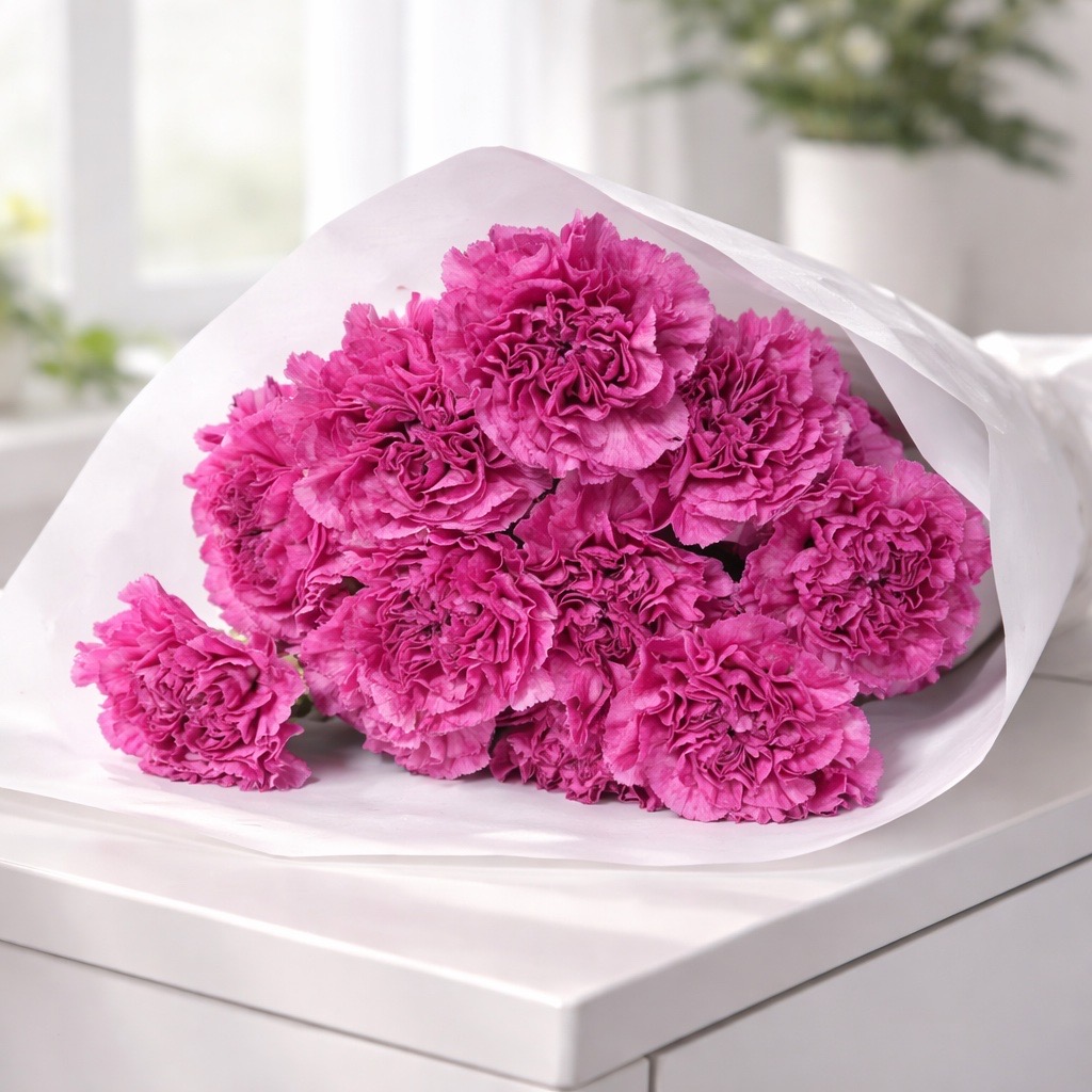 Die Edelnelken in Pink begeistern mit ihrer kräftigen, lebhaften Farbe und den voluminösen, gefüllten Blüten. Sie verleihen jedem Arrangement eine frische, romantische Note und sind perfekt geeignet für festliche Sträuße, elegante Tischdekorationen oder moderne Blumenkreationen. Ihre intensive Farbgebung macht sie zu einem besonderen Blickfang, ideal für Geburtstage, Hochzeiten oder Valentinstags-Dekorationen.