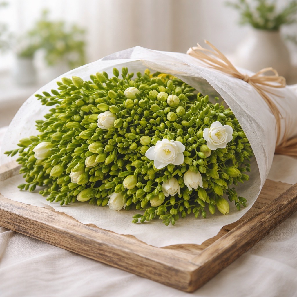 - Edle Sträuße: Kombinieren Sie die Freesien Volante mit Rosen, Schleierkraut oder Eukalyptus für stilvolle und harmonische Arrangements.