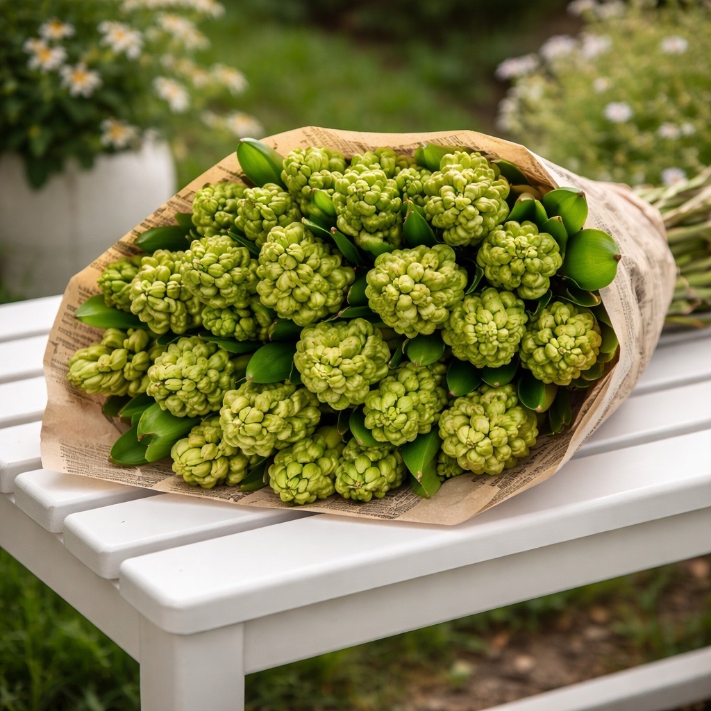 Mit einer Stiellänge von ca. 25–30 cm eignen sich diese Hyazinthen ideal für kleinere Vasen und kreative Arrangements, die Leichtigkeit und Frische ausstrahlen.