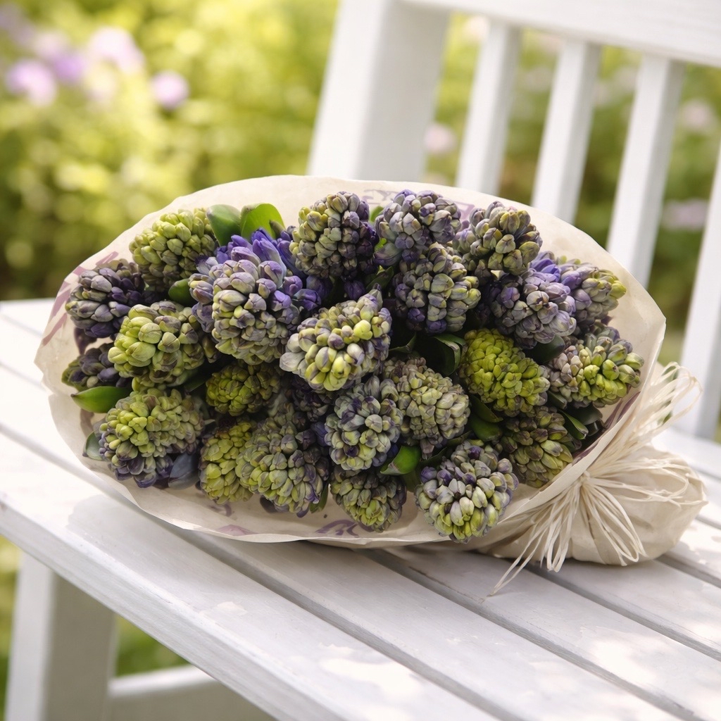 - Frühlingssträuße: Kombinieren Sie die Hyazinthen Delft Blue mit weißen Tulpen, gelben Narzissen oder Schleierkraut für ein harmonisches Arrangement.