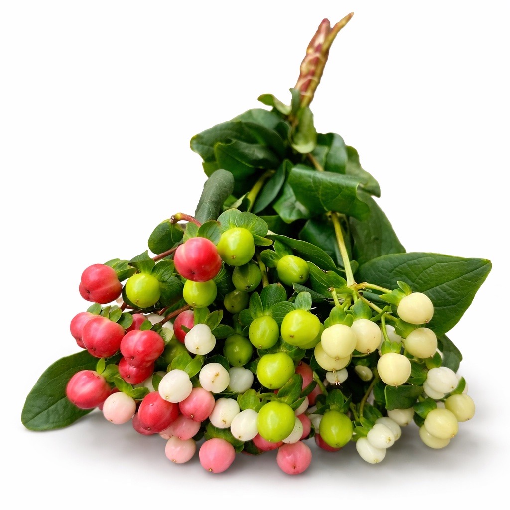 - 10 Stiele Hypericum Magical Gemischt im Bund in verschiedenen Farben (z. B. Rot, Rosa, Grün, Weiß)