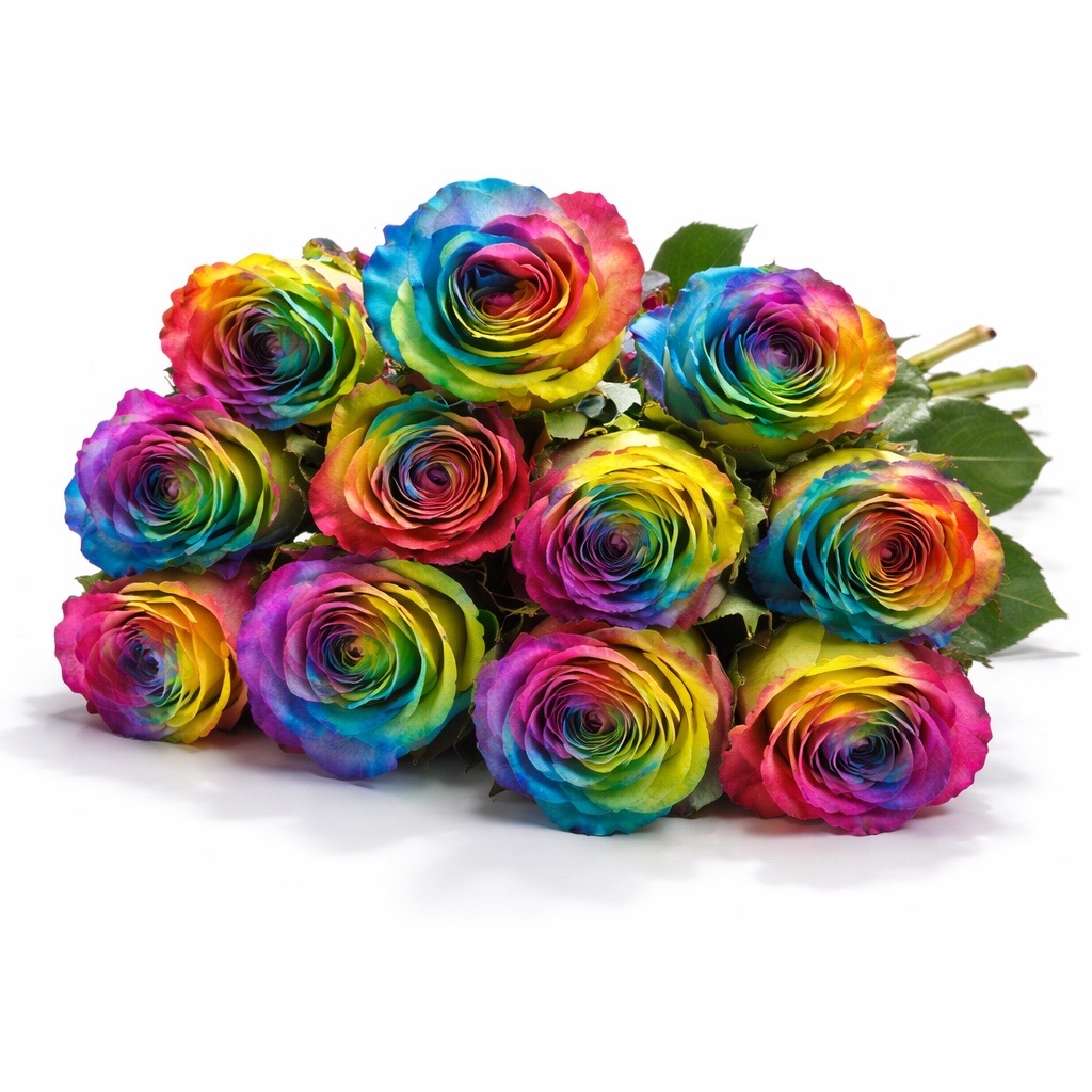 Unsere 10 Premium-Rosen der Sorte Rainbow beeindrucken durch ihre leuchtenden, mehrfarbigen Blüten. Jede Rose ist ein Unikat und vereint strahlende Farben wie Blau, Gelb, Rosa und Grün, die für Lebensfreude, Individualität und kreative Eleganz stehen. Mit einer Mindestlänge von 50 cm und den samtigen Blütenköpfen sind diese Rosen ein echter Hingucker – ideal für besondere Anlässe, kreative Dekorationen oder als originelles Geschenk.