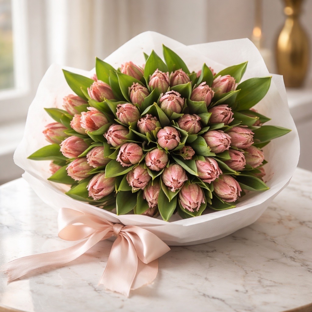 Die Papageien-Tulpen Bell Song sind ein Meisterwerk der Natur mit ihrer einzigartigen, gefransten Blütenform und der harmonischen Kombination aus zartem Rosa und reinem Weiß. Diese außergewöhnlichen Tulpen verleihen jedem Arrangement eine elegante und extravagante Note. Sie eignen sich perfekt für luxuriöse Sträuße, romantische Tischdekorationen oder als auffällige Akzente in kreativen Blumenkreationen.