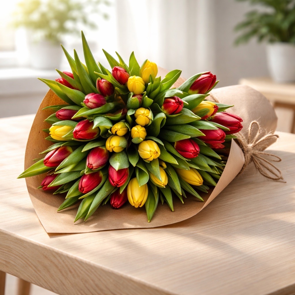 - Fröhliche Sträuße: Kombinieren Sie die gemischten Tulpen mit Schleierkraut oder Eukalyptus für ein harmonisches Arrangement.