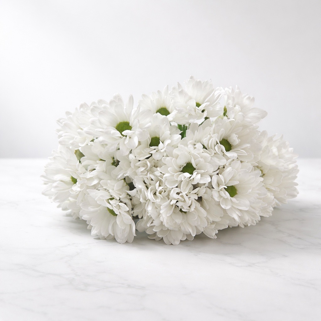 Die Chrysantheme Bacardi (Weiß) begeistert mit ihren reinweißen, leuchtenden Blüten und ihrer eleganten, voluminösen Form. Sie ist eine ideale Wahl für klassische und moderne Blumenkreationen. Perfekt für stilvolle Sträuße, festliche Tischdekorationen oder als Highlight in gemischten Arrangements. Die schlichte und makellose Schönheit der Bacardi Chrysanthemen macht sie zu einer unverzichtbaren Blume für Hochzeiten, Taufen oder besondere Anlässe.