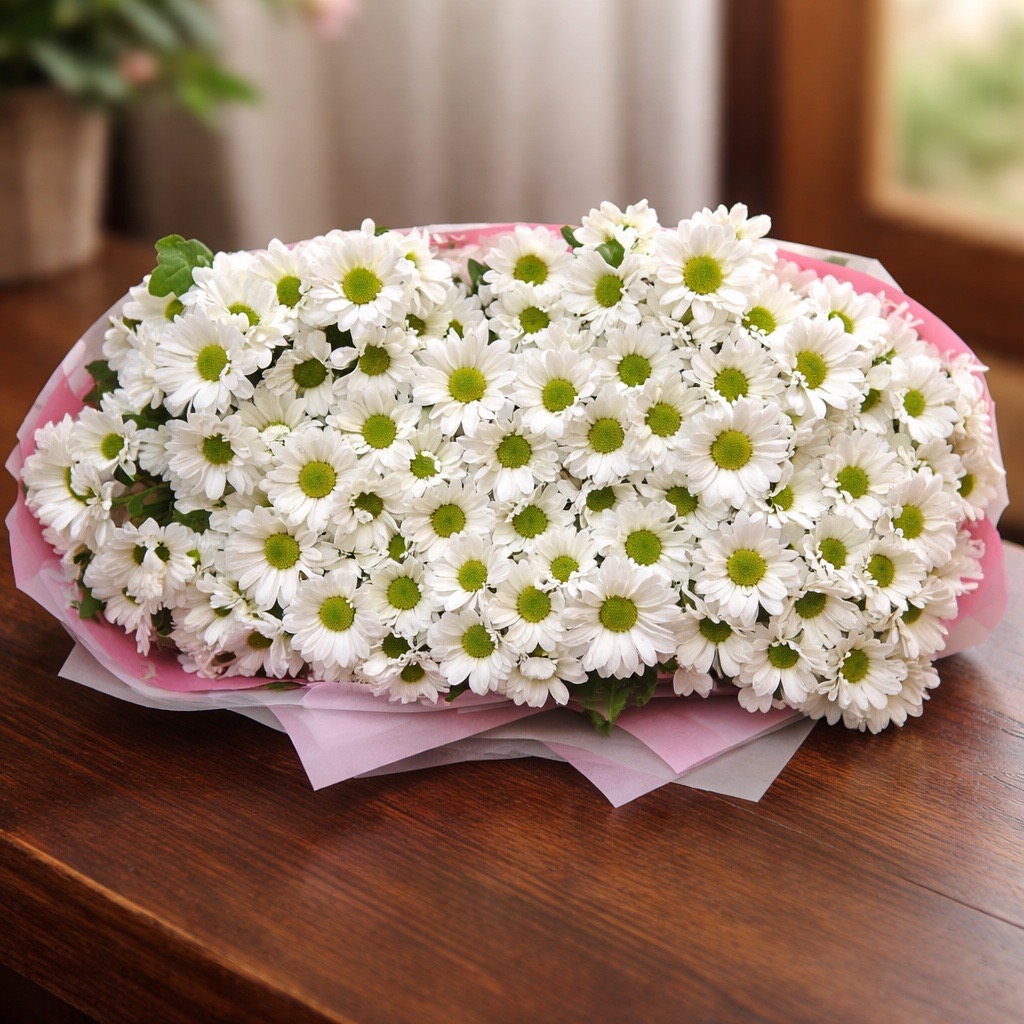 Mit einer Stiellänge von ca. 50–60 cm sind diese Chrysanthemen perfekt für moderne, schlichte und edle Dekorationen geeignet.