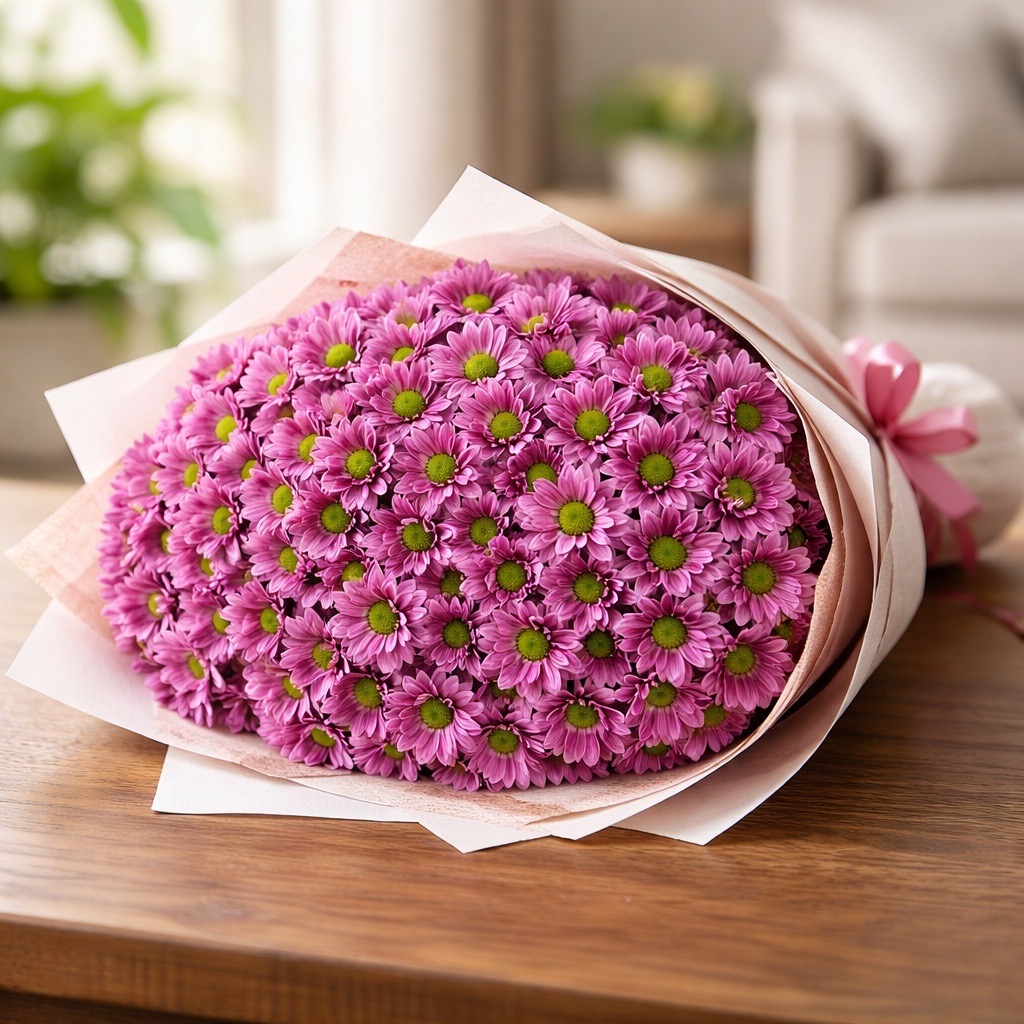 - Romantische Sträuße: Kombinieren Sie die Santini Krissi mit Rosen, Eukalyptus oder Schleierkraut für zarte und harmonische Arrangements.