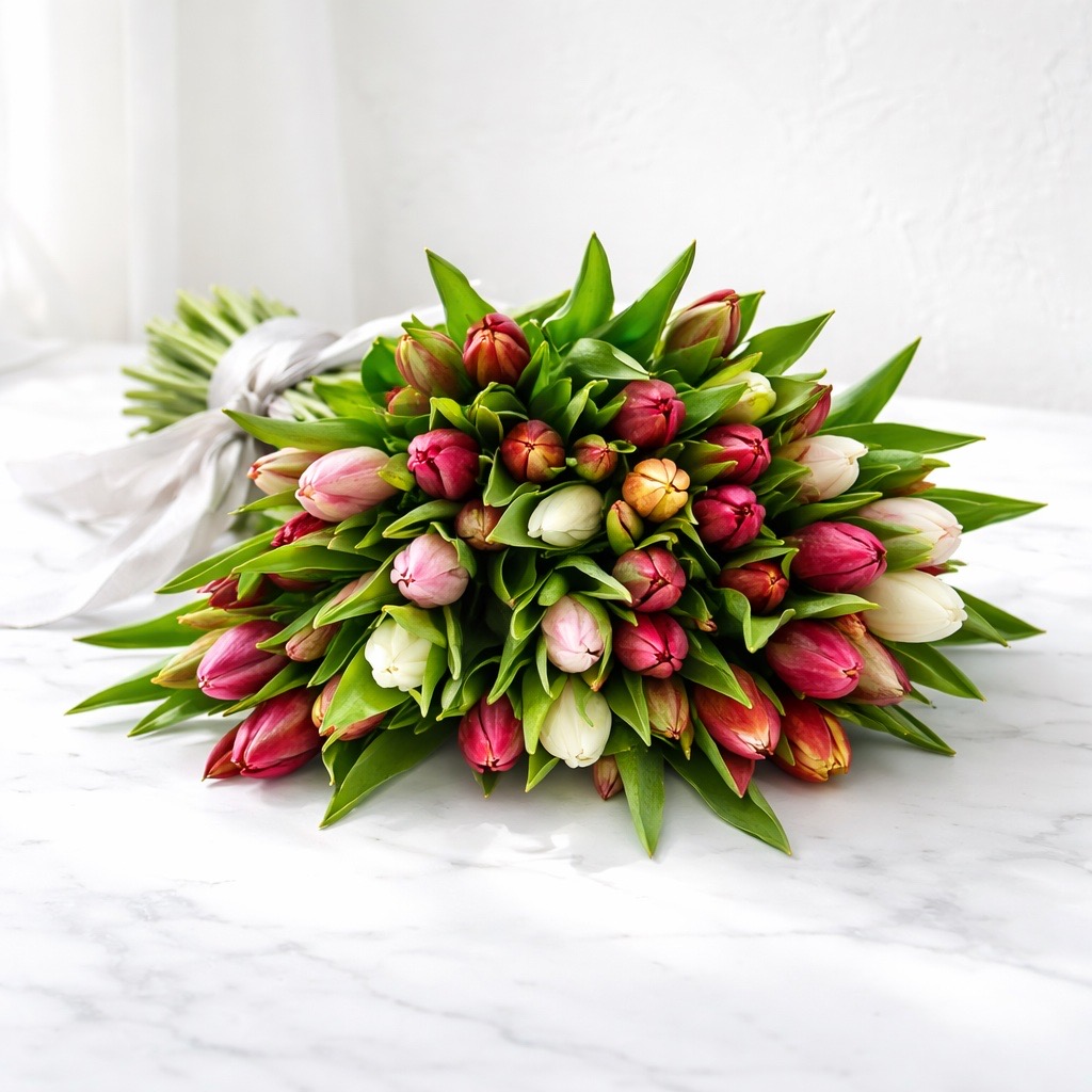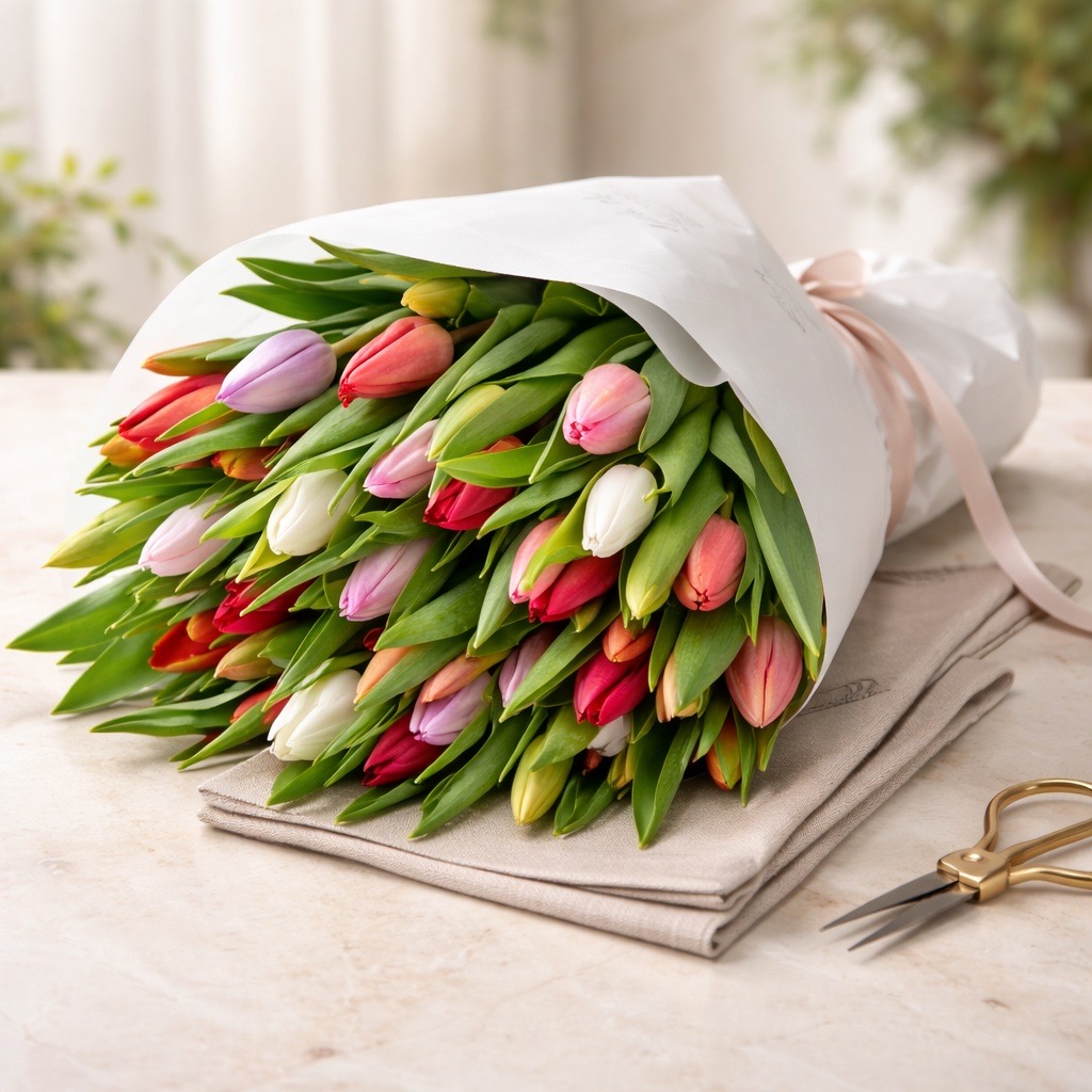 - Fröhliche Sträuße: Kombinieren Sie die gemischten Tulpen mit Schleierkraut oder Eukalyptus für ein harmonisches Arrangement.
