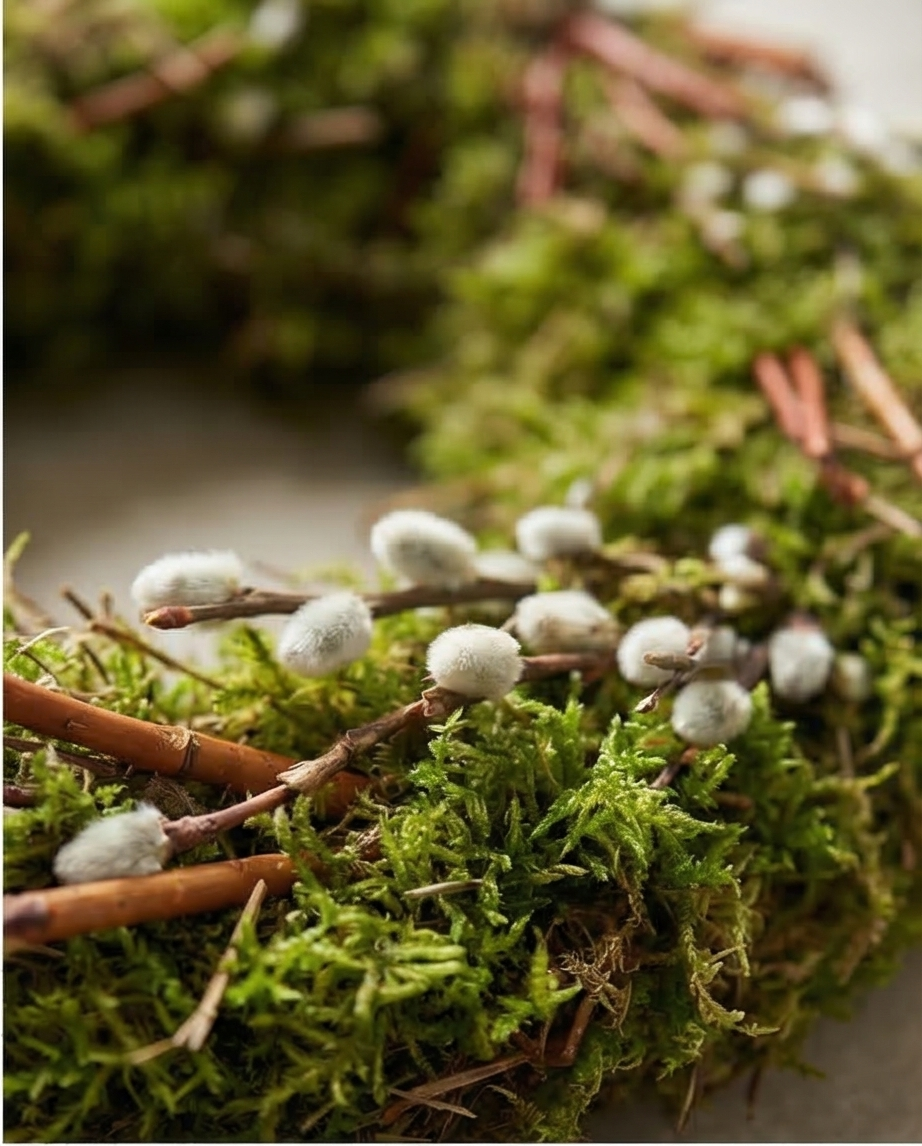 Natürliche Materialien: Weide, Moos und Weidekätzchen